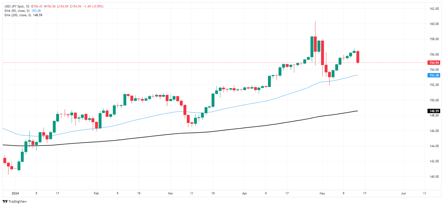 USD/JPY eased on Wednesday, backsliding into the 155.00 handle after the US Dollar (USD) eased across the board, shedding weight against all of its major currency peers. The Japanese Yen (JPY) is also finding a reprieve from broad-market selling pressure, recovering ground as the Greenback recedes.