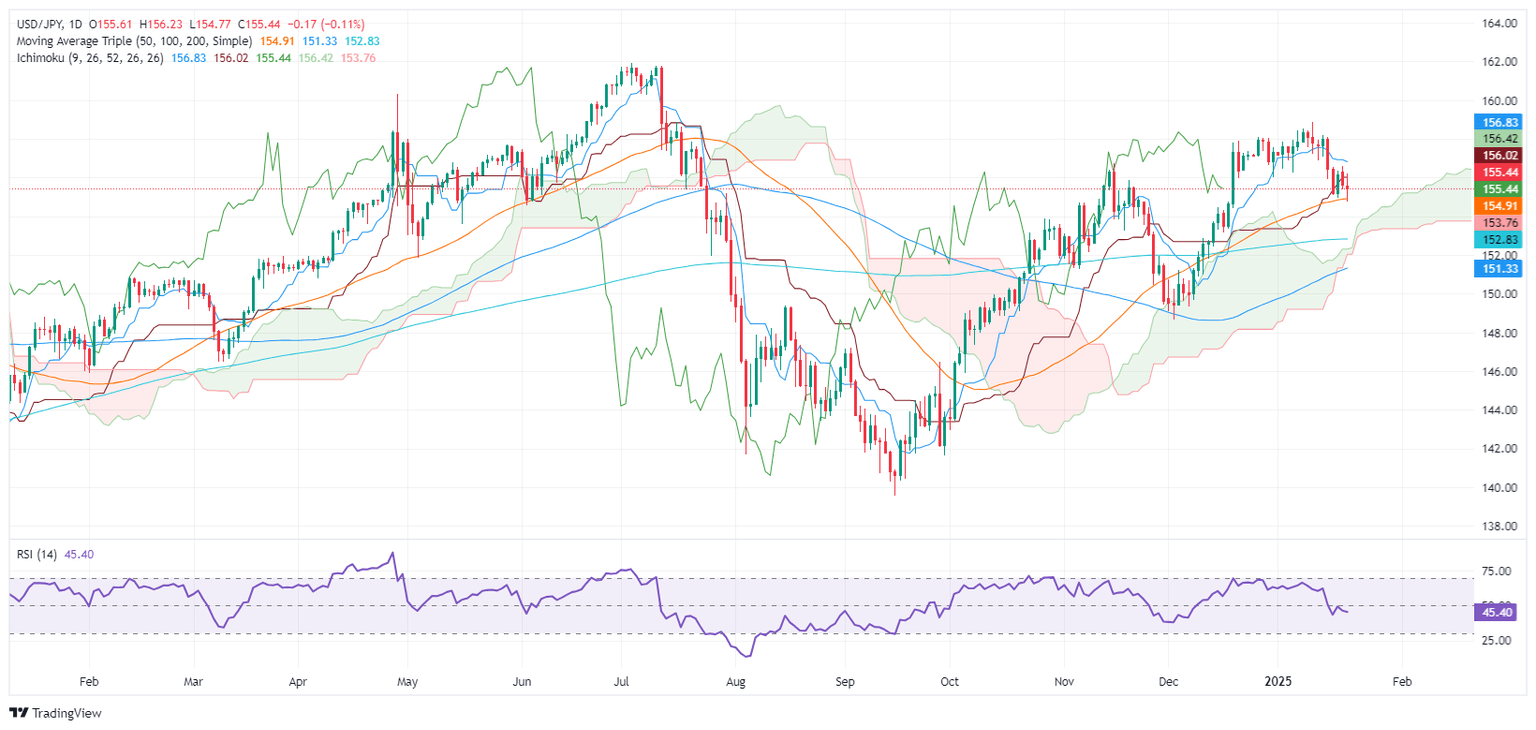 The USD/JPY was virtually unchanged during the North American session on Tuesday, as traders assessed US President Donald Trump’s threats to impose 25% tariffs on Canada and Mexico as soon as February 1. The Greenback recovered as the major hit a daily high of 156.20. However, fears faded as the pair traded near 155.54, virtually unchanged.