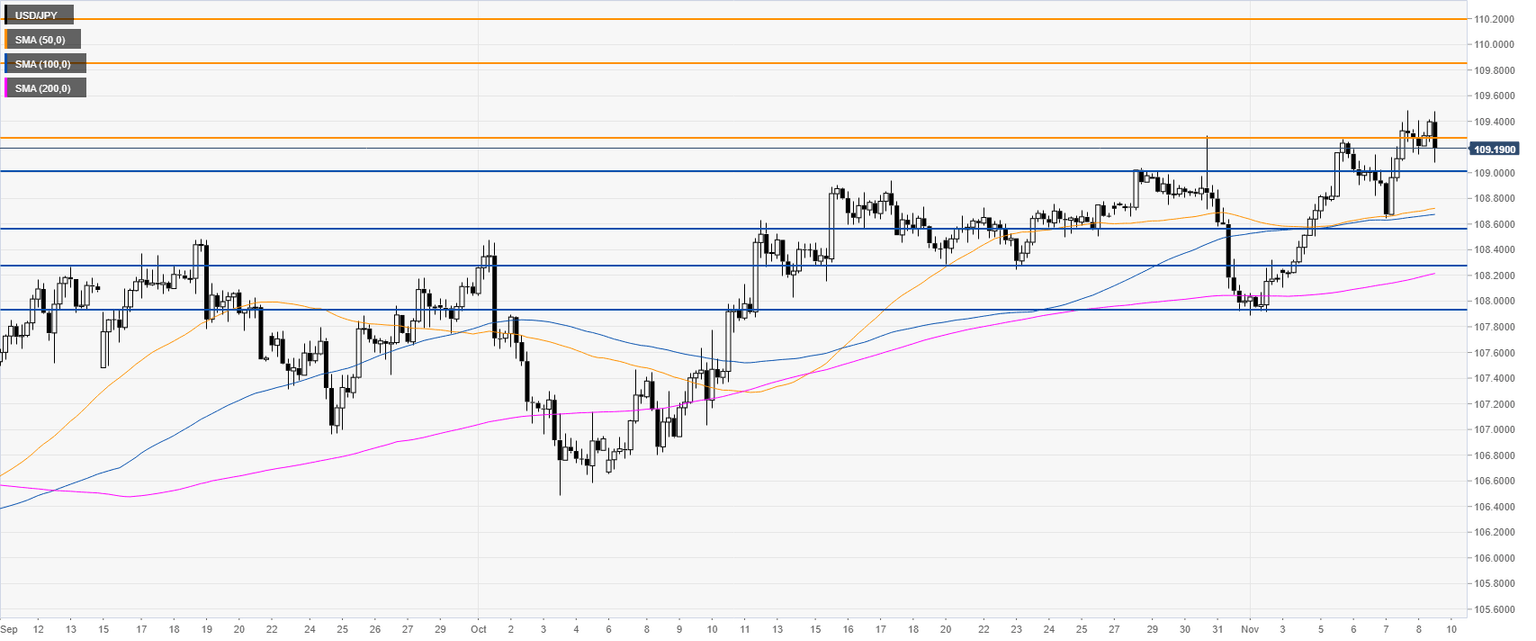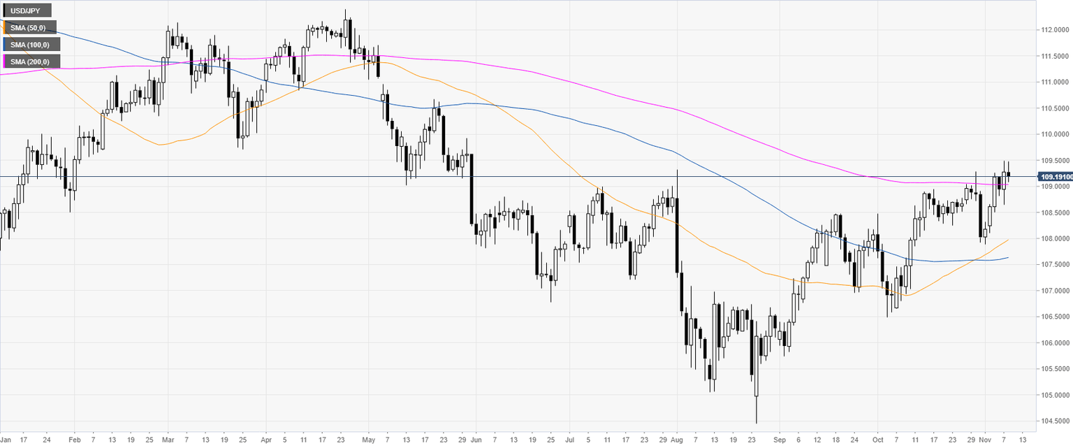 USD/JPY is trading above the 109.00 handle and the 200-day simple moving average (SMA) on the daily chart. In the last two months the market has been gaining considerable momentum.