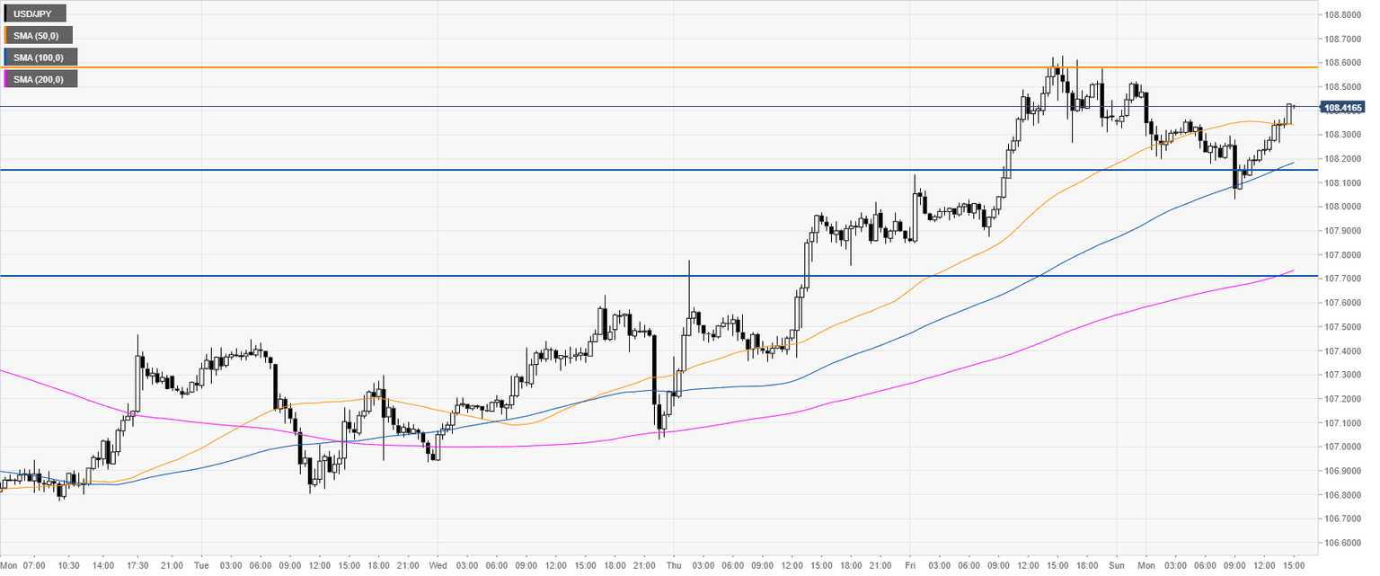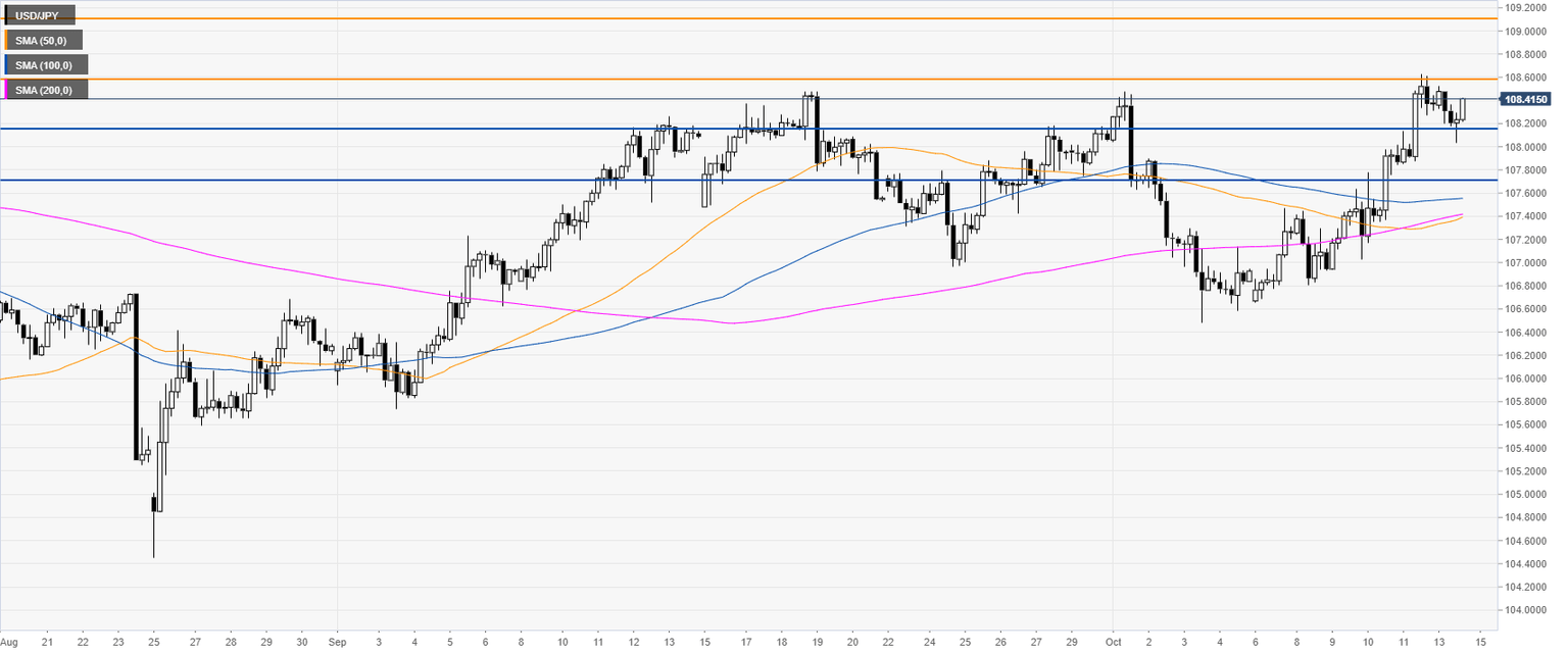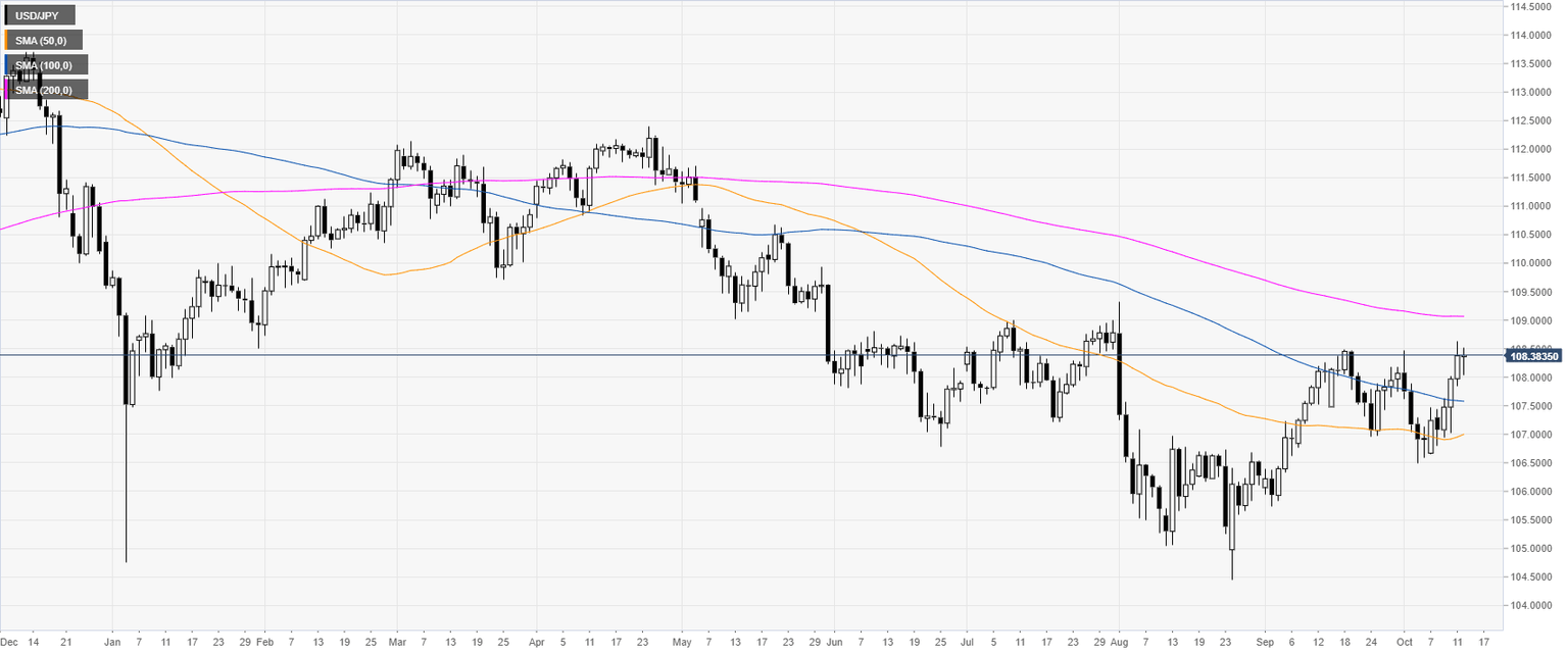 USD/JPY is trading above the main SMAs on the four-hour chart, suggesting bullish momentum in the medium term. The market is nearing the 108.56 resistance. A daily close above this resistance can open the gates to the 109.12 price level, according to the