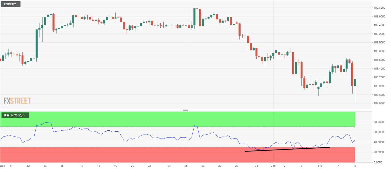 USD/JPY has recovered from session lows on hopes of de-escalation of US-Iran tensions, however, it is too early to call a bullish reversal, as the lower highs setup is