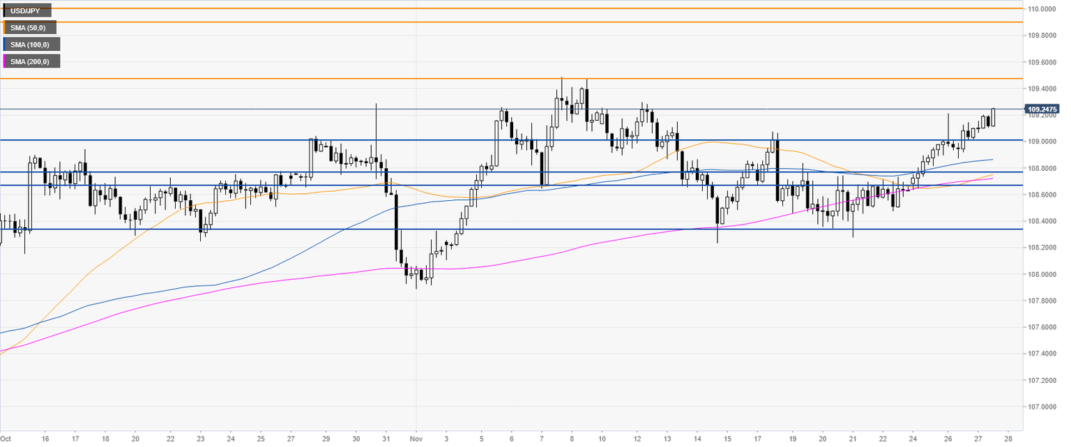 - USD/JPY is nearing the November highs while trading above the 109.00 handle.