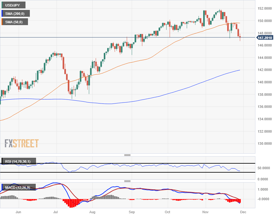 The USD/JPY is seeing a light rebound after dipping below 147.00 in Wednesday's trading session, but upside momentum remains limited and it's getting difficult to ignore the fact that the US Dollar is down nearly 3.5% from multi-year peaks set in November just below the 152.00 major handle.