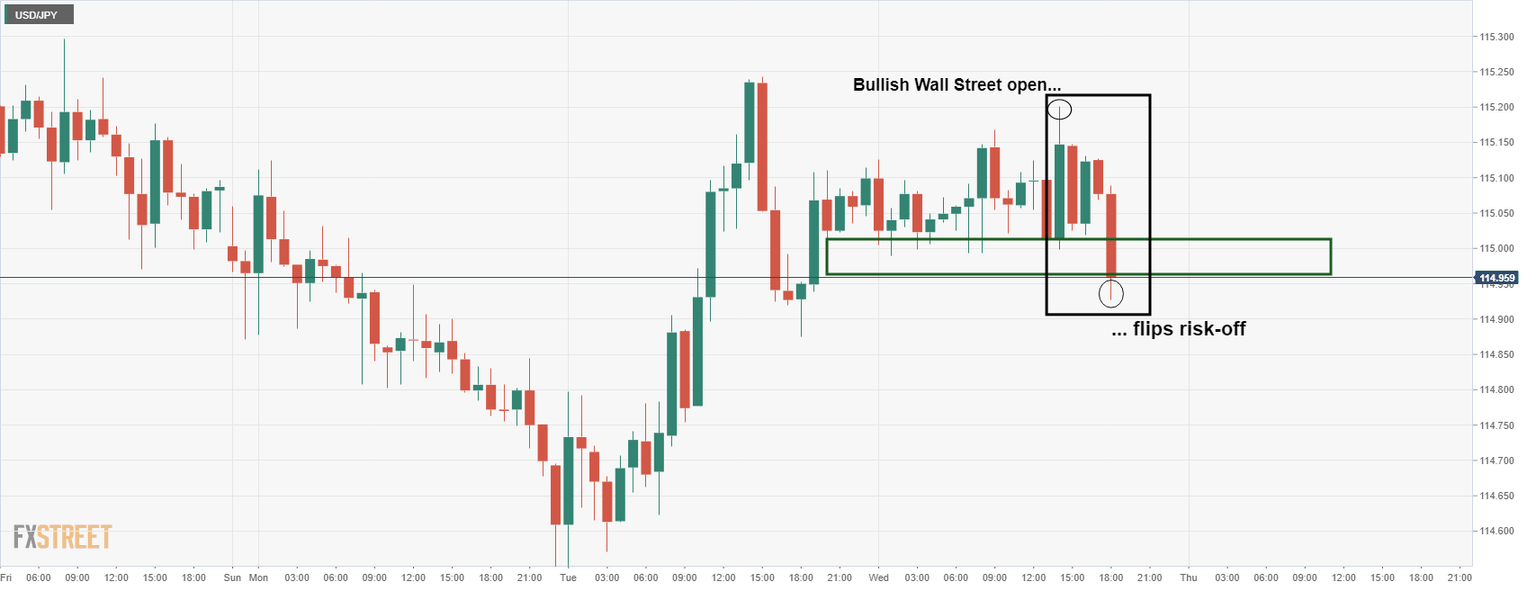 USD/JPY is under pressure as the yen picks up a safe-haven bid amid the latest bullish developments for the currency pertaining to the onset of war between Russia and the West.
