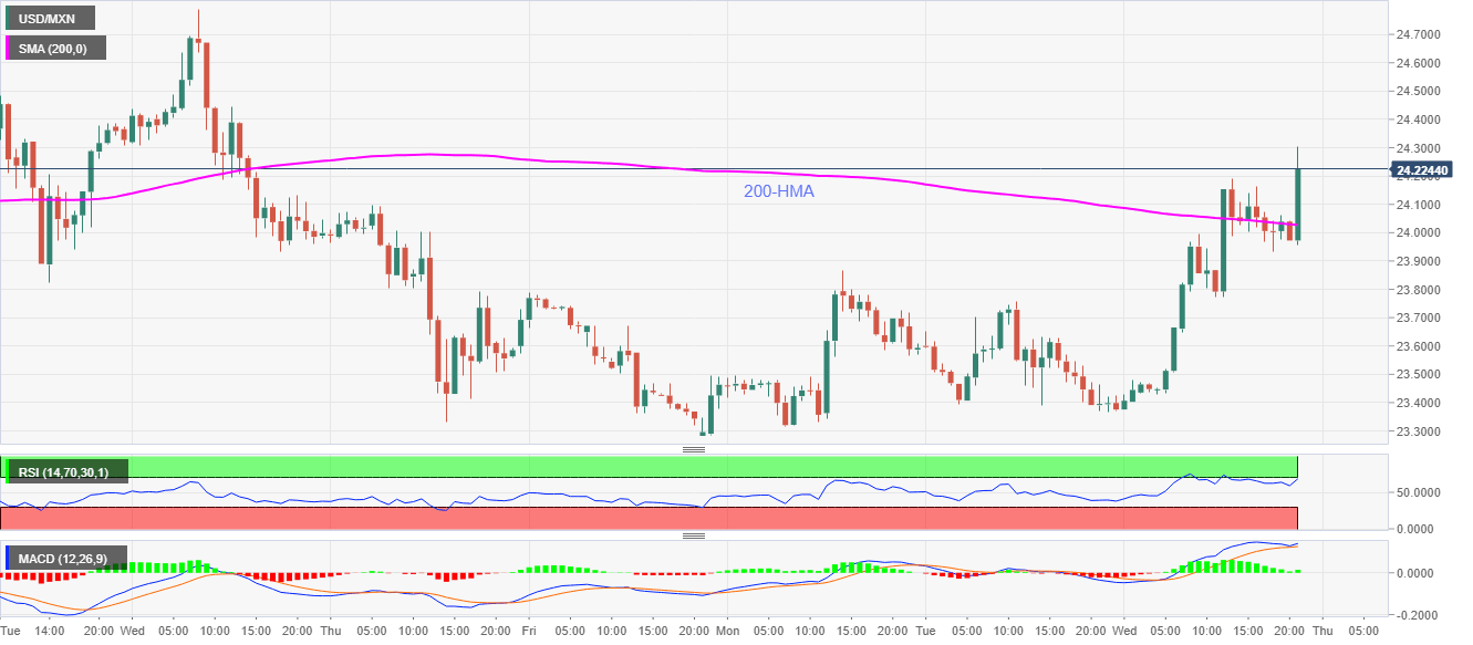 Following the news, the USD/MXN pair surged from 23.95 to 24.30, currently around 24.23, while also probing the weekly top.
