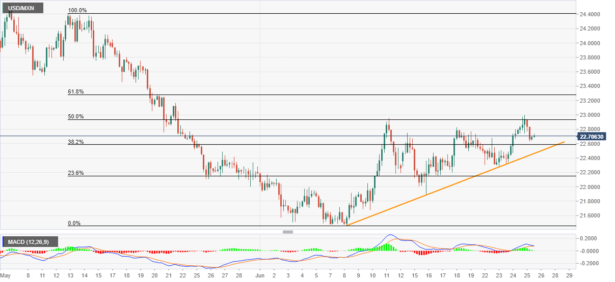 USD/MXN prints mild gains of 0.24% while taking the bids to 22.72 during the early Friday. The pair seems to extend the bounce off 22.63 after Banxico offered 50 basis points (bps) of rate cut the previous day.