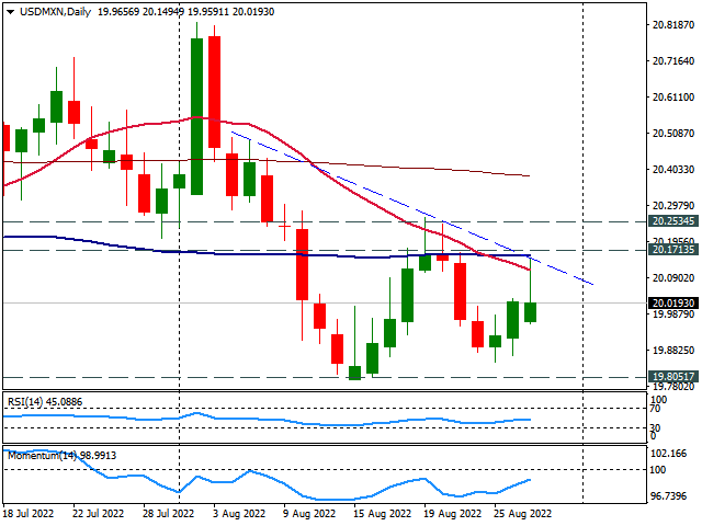 On a wider perspective, USD/MXN continues to consolidate around 20.00, moving without a clear direction. With the price under key daily moving average the bias is to the downside with momentum under 100. Although other technical indicators like the RSI are flat around midlines.