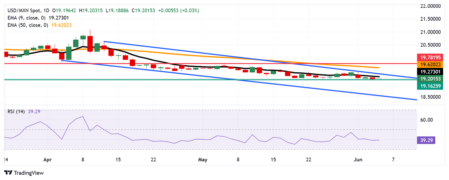 USD/MXN Price Forecast: Finds resistance around 19.20 ahead of nine-day EMA