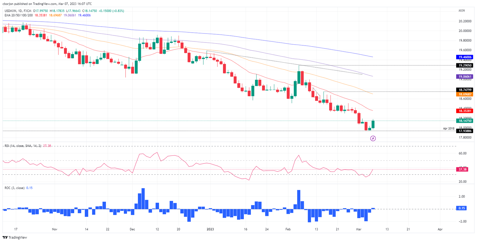- USD/MXN Price Analysis: Begins to approach the 20-day EMA at 18.3533.