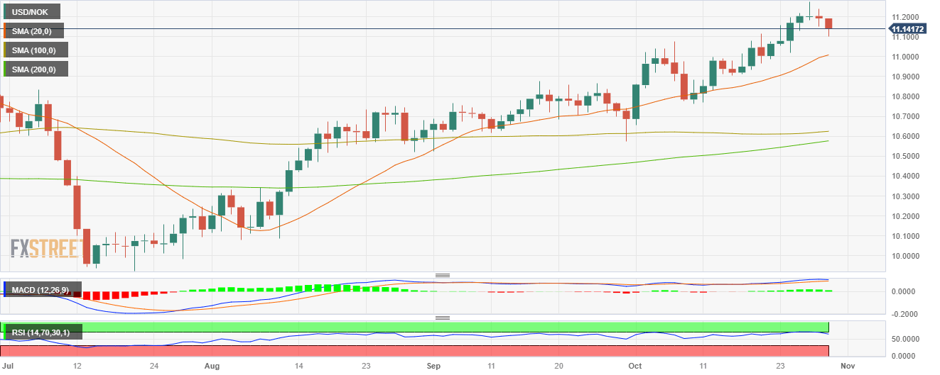 - USD/NOK is down for a third consecutive day, trading at 11.142