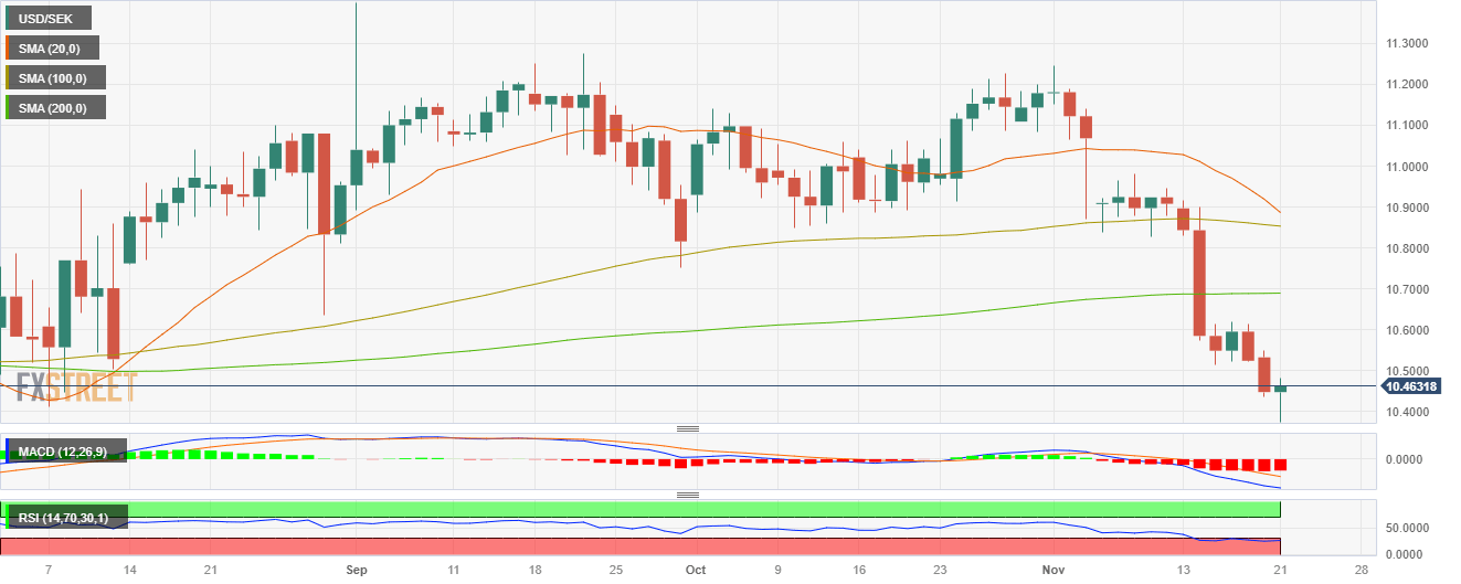 The USD/SEK pair is catching some wind in Tuesday's trading session, ascending to around 10.470, tractioned by a resurgence in the US Dollar after the Federal Open Market Committee (FOMC) minutes.