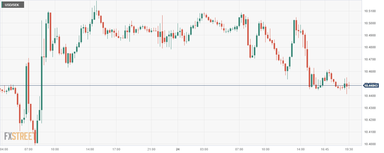- The USD/SEK pair witnessed a 0.30% drop, hovering around the 10.452 level.