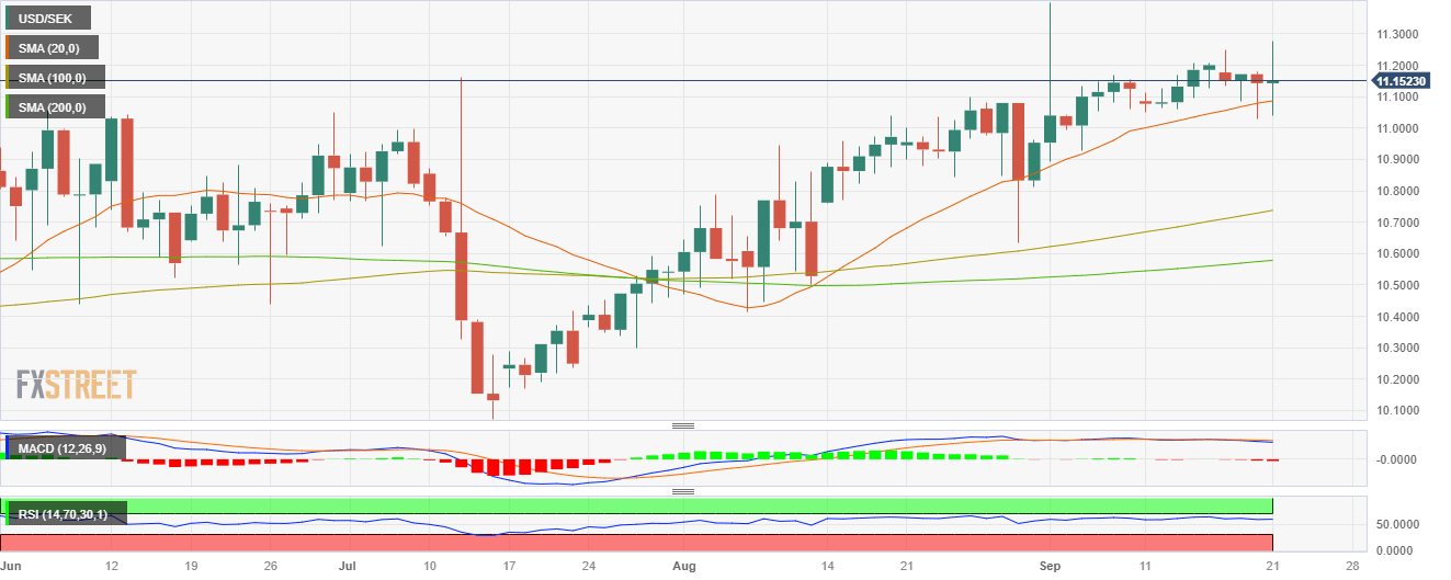 On Thursday’s session, the USD/SEK climbed to its highest level since October 2022, towards 11.247, seeing 1% daily gains, but failed to hold its momentum and settled at 11.152. On the SEK's side, the Swedish Riksbank hiked rates by 25 bps and sounded hawkish, while on the USD side, the Greenback eased during the American session, and seems to be consolidating gains.