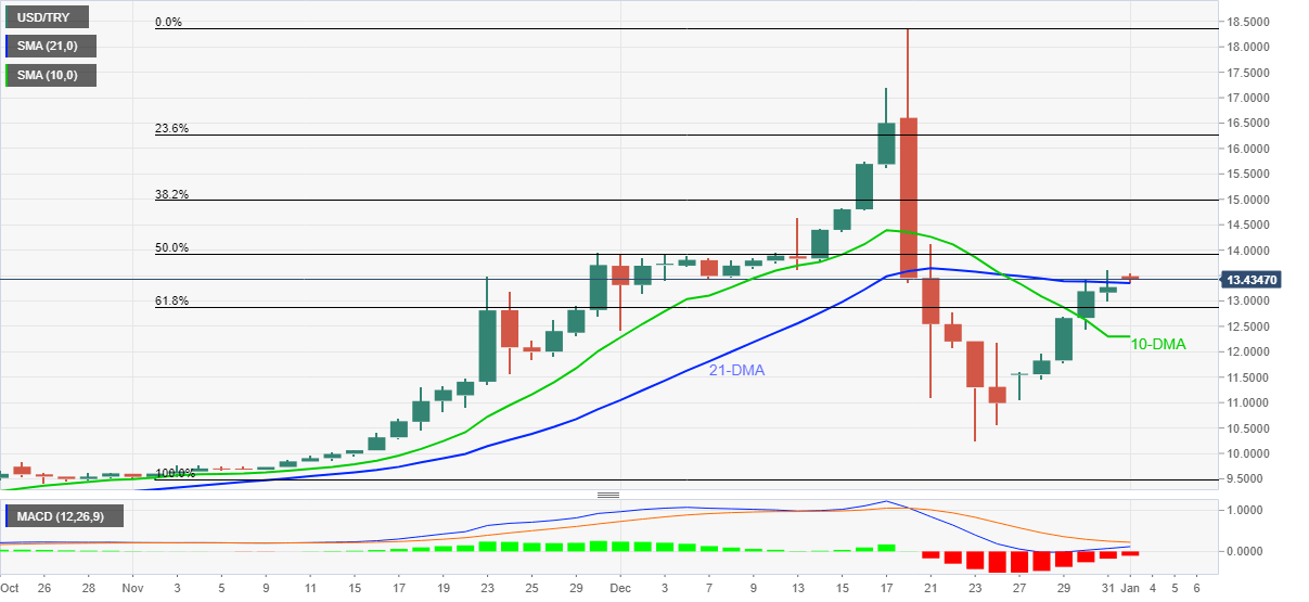 USD/TRY: 21-DMA defends buyers above $13.00 as Turkey inflates electricity, gas prices