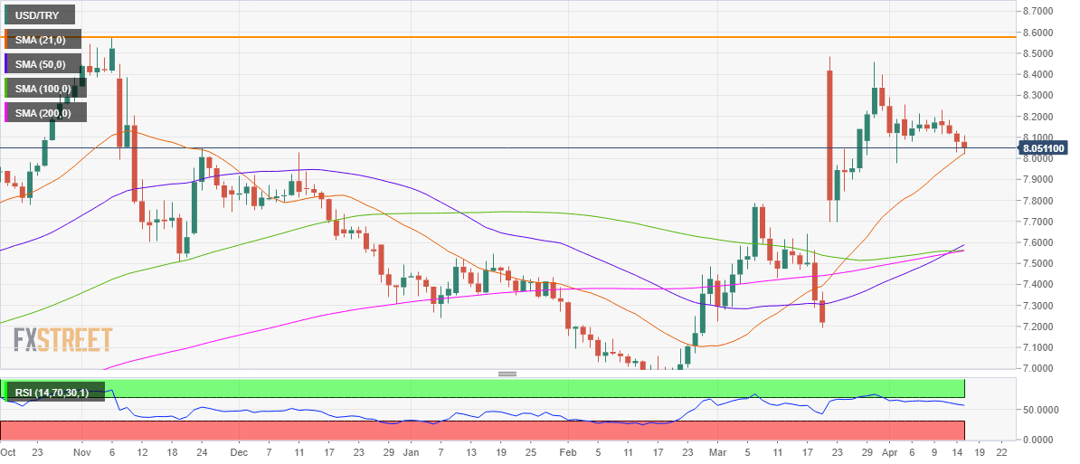USD/TRY challenges 21-DMA support ahead of the critical Turkish central bank decision