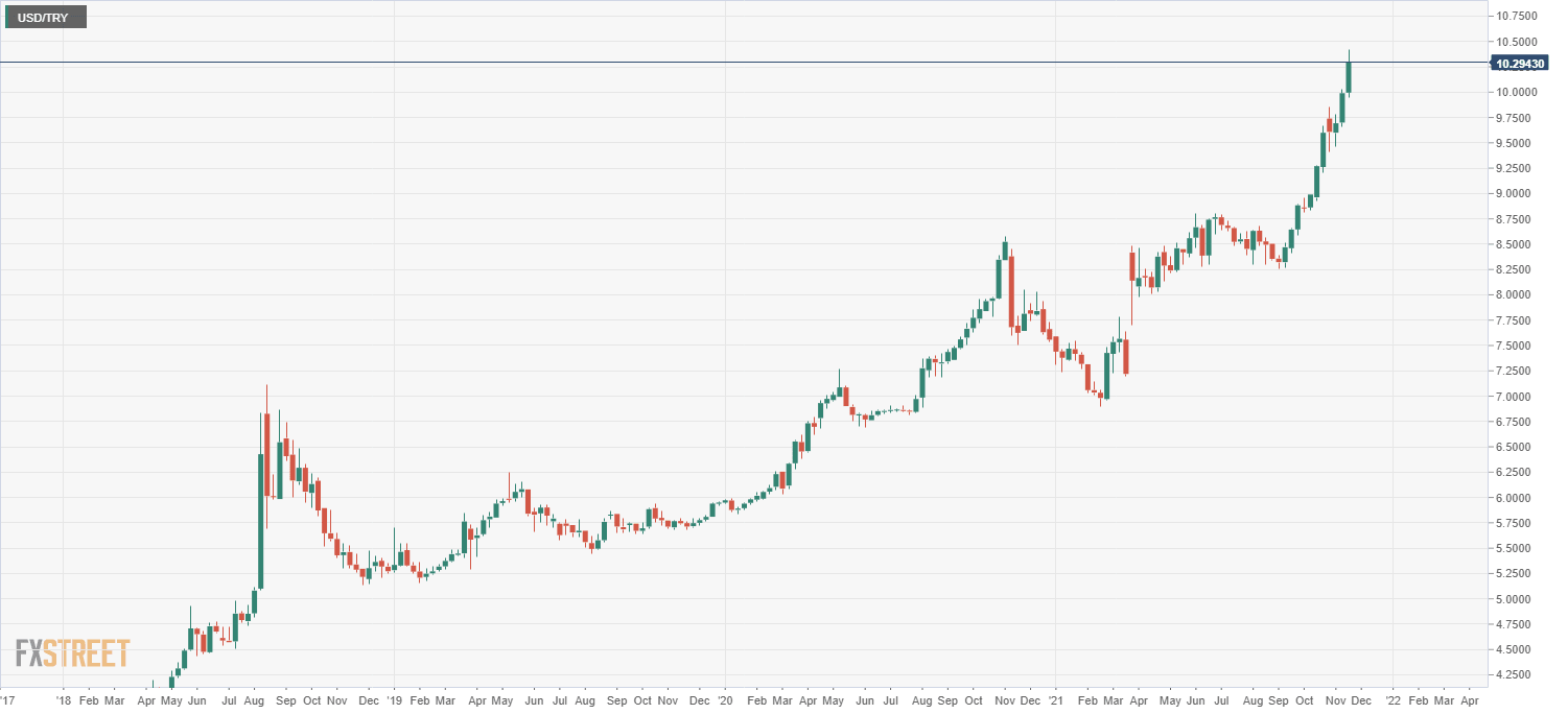 - USD/TRY continues to surge higher after it broke above 10.00 for the first time last week.