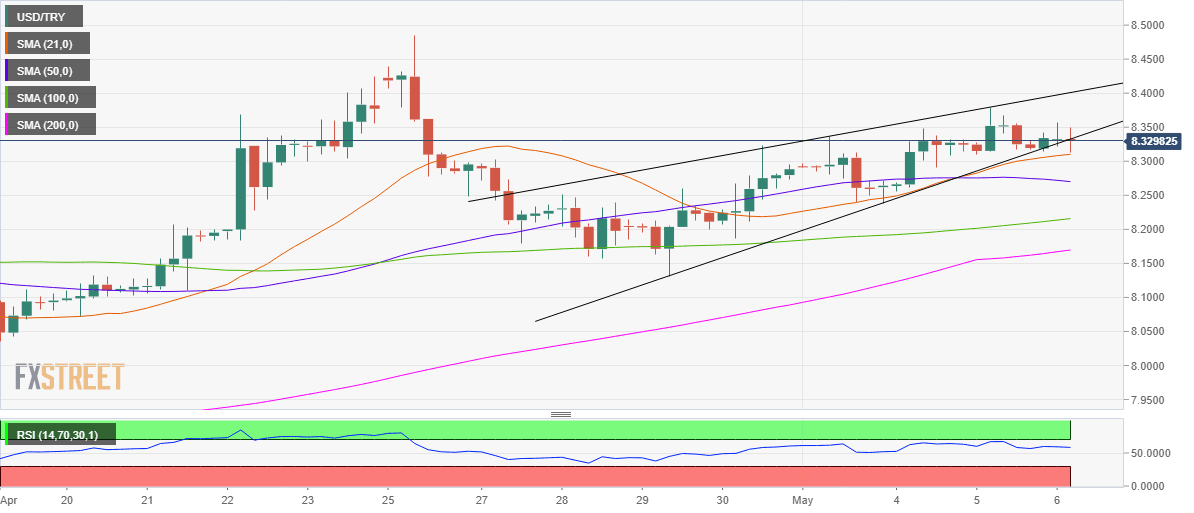 USD/TRY: Off weekly highs, holds above 8.30 ahead of Turkish central bank decision
