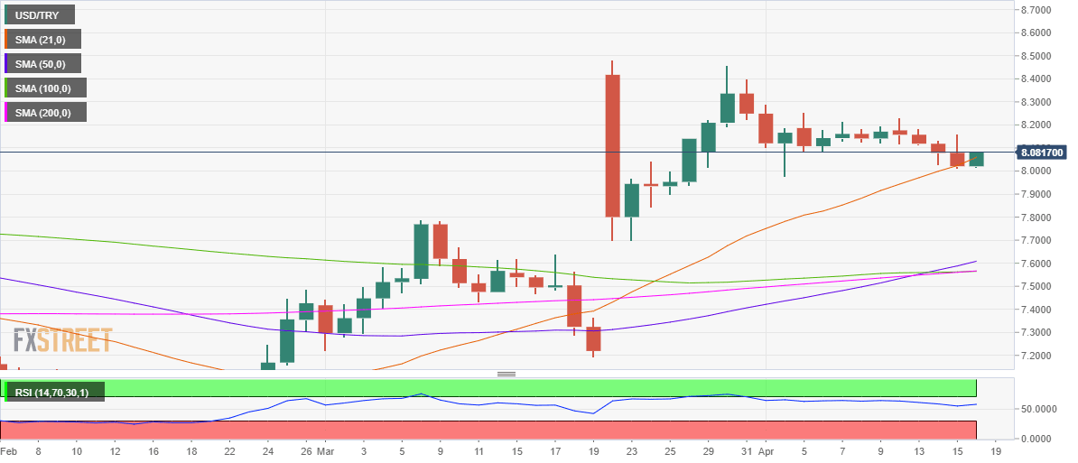 - USD/TRY rebounds to test the 21-DMA support-turned-resistance.