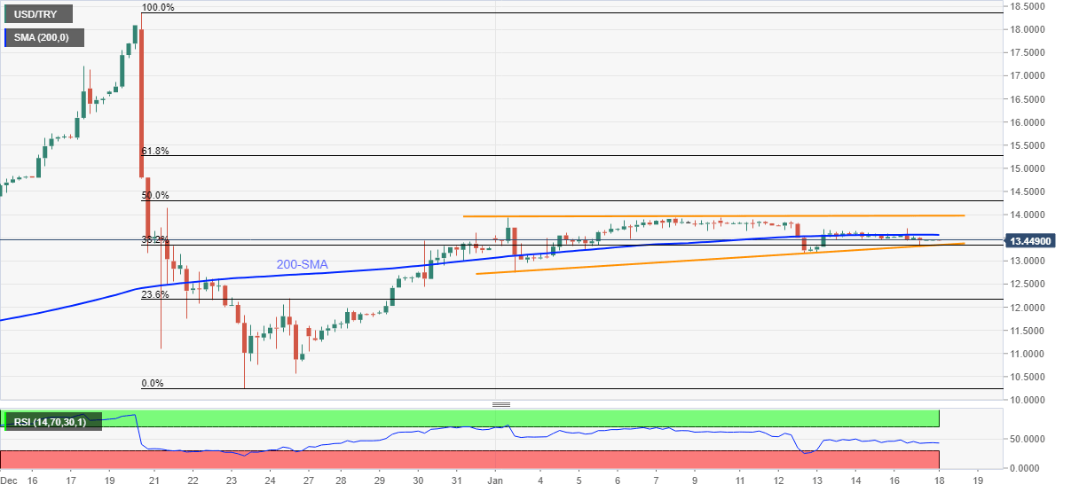 USD/TRY Price Analysis: Lira buyers stay hopeful near $13.45 inside fortnight-old ascending triangle