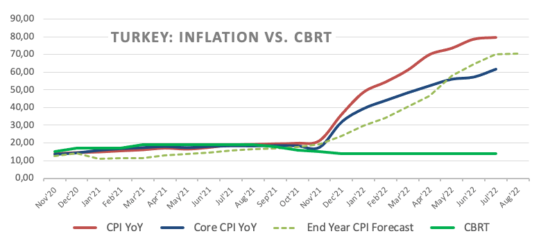 In addition, the Turkish central bank (CBRT) released its End Year CPI Forecast, and now sees consumer prices rising 70.60% by end of 2022 (from 69.94%).