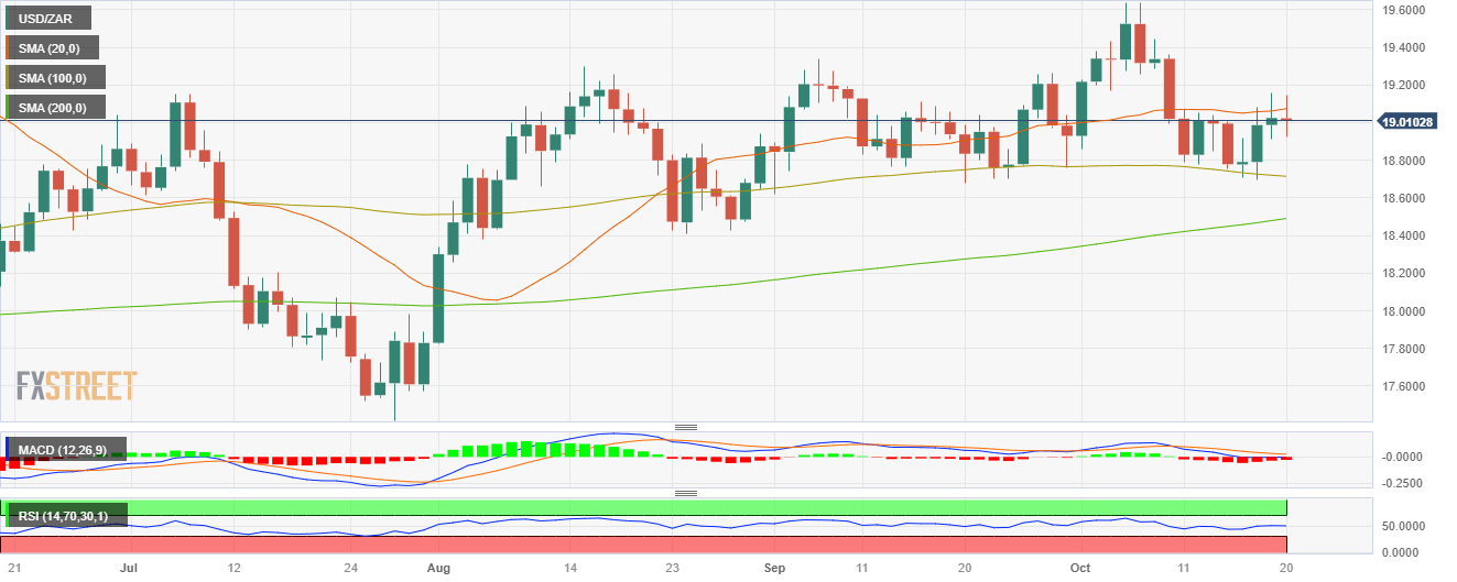 - USD/ZAR dropped below the 20-day SMA after peaking at a high near 19.150.