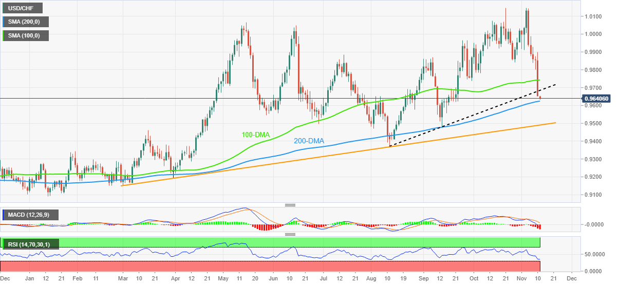 USDCHF Price Analysis: All eyes on 200-DMA support above 0.9600