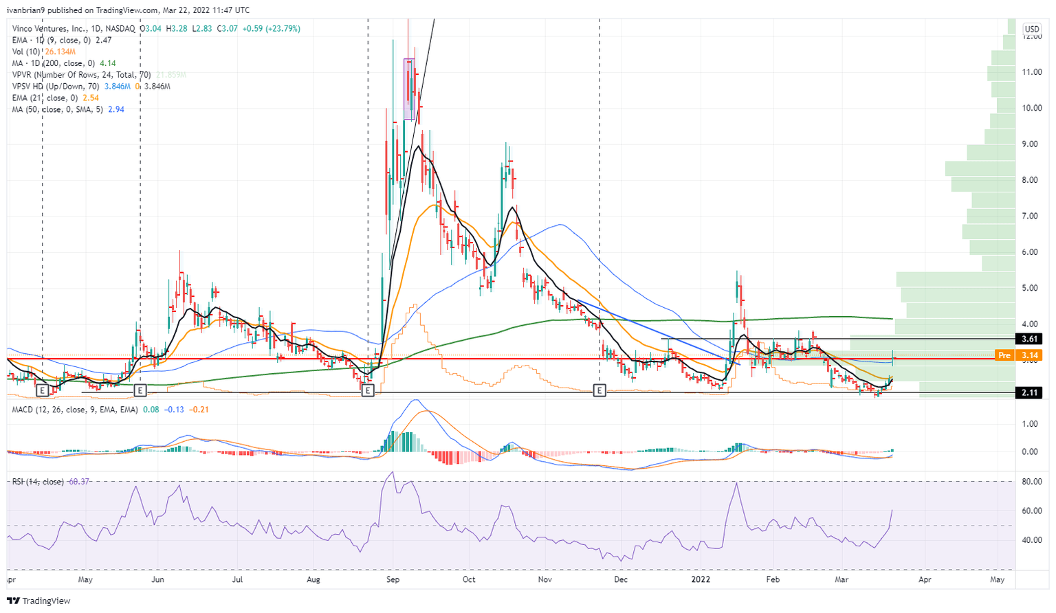 Vinco Ventures (BBIG) stock is back on social media and FinTwit as the stock soars on Monday. BBIG stock closed up 24% on Monday at $3.07. A notable gain, but this is a volatile stock and known for moves like this. BBIG stock is still much lower than its retail frenzy peak of $12.49 reached in September 2021. BBIG fell back to $2 after that and has had a few attempts at a squeeze since, but most of these have eventually faded away. Will this one stick?