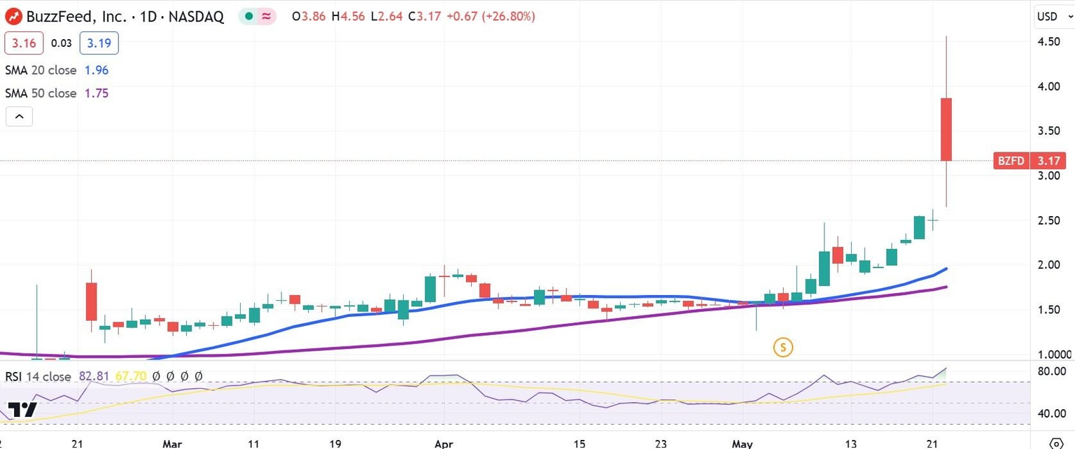 BuzzFeed is already trading at a one-year high, and a move to $10.00 is absolutely in the cards for the simple reason that BuzzFeed could become the newest meme stock.