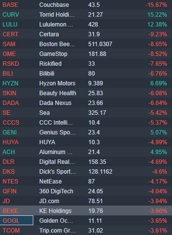 China is cracking down again as some Chinese tech names in the gaming sector are summoned to meet authorities. Chinese tech names are all getting hit it would seem. BEKE, NTES, BILI, JD, BABA, PDD, TME.