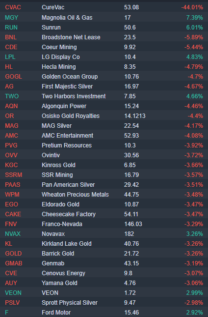 Curevac (CVAC) drops 40% in the premarket on covid vaccine results.