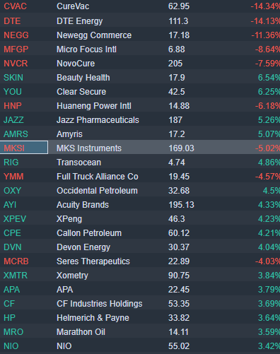 CureVac (CVAC) down 12% premarket on covid vaccine trial results.
