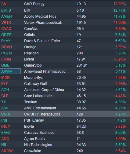 Crispr Therapeutics (CRSP) up 5% premarket on new data in a drug test.