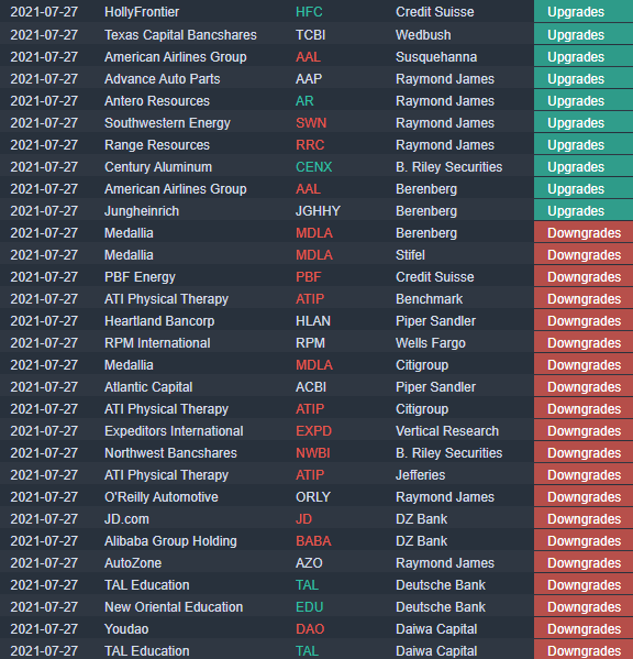American Airlines (AAL) upgraded by Susquehanna and Berenberg.
