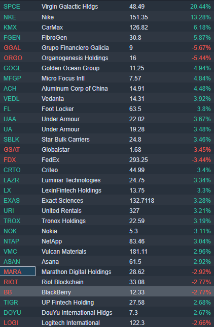 FootLocker (FL) and UnderArmour (UA) up 4% in premarket, most likely dragged up by Nike (NKE).