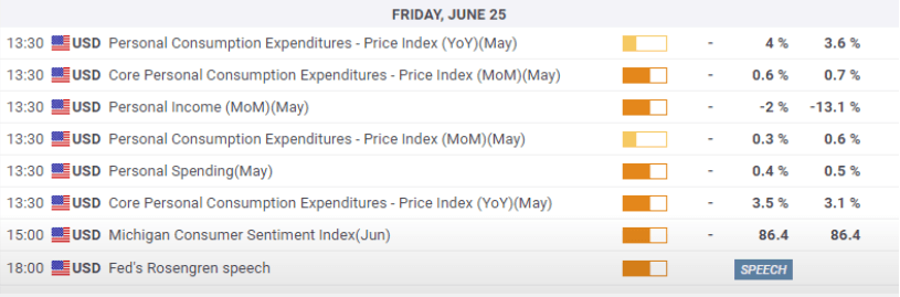 US PCE Price Index, Core +0.5% versus forecast +0.6%.