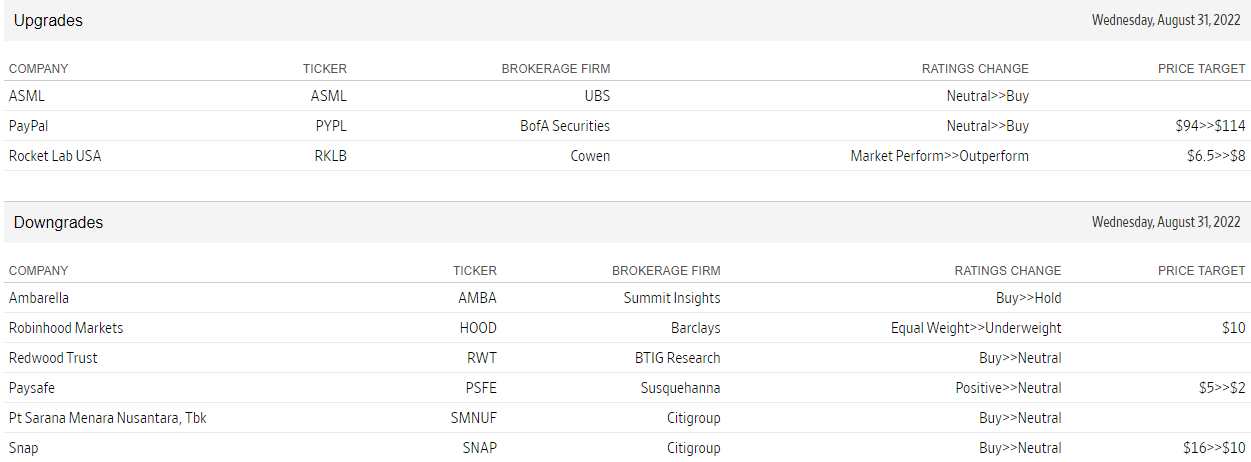Upgrades and downgrades