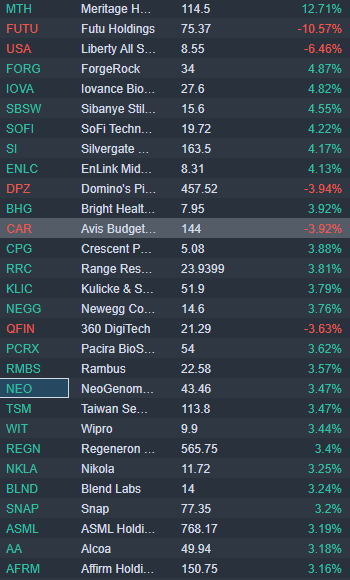 Ok, that is enough panic thought for one day, back to what is really happening on the ground. Banks as we predicted are benefitting from higher rates and higher deal activity with more smashes from Wells Fargo (WFC), Bank of America (BAC), Citigroup (C), and Morgan Stanley (MS). The release of reserves, which was permitted now after the worst of the pandemic, was behind some of the strong bank beats. This is a small caveat in the positive headlines that will likely be overlooked by many. The strong results though should help stocks on Thursday, which are looking to build on the turnaround for the Nasdaq witnessed on Wednesday. Just to add in another caveat here, CNBC reports that mortgage foreclosures surged 32% in Q3.