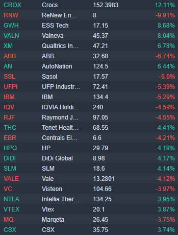 Crocs (CROX) up over 10% as earnings again smash it. Sales up nearly 70%.