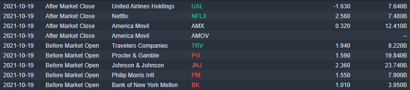 Equity markets turned on early bears yesterday and surged higher with riskier assets showing the biggest gains. The meme stock space was back. Crypto stocks surged on Bitcoin, and tech favourites were also strong as investors focused on strong earnings growth over yields and energy prices. Yields did at least retreat somewhat during the day, allowing the Nasdaq space to breathe, but energy prices continue to rise and portend bumps ahead for growth stocks. Netflix (NFLX) (see more) and Tesla (TSLA) shares continued their recent strong performances from both, with Netflix reporting after the close while Tesla is up tomorrow. We have been resolutely bullish on Tesla (see more) for some time but feel that both stocks may have run too far ahead of earnings.