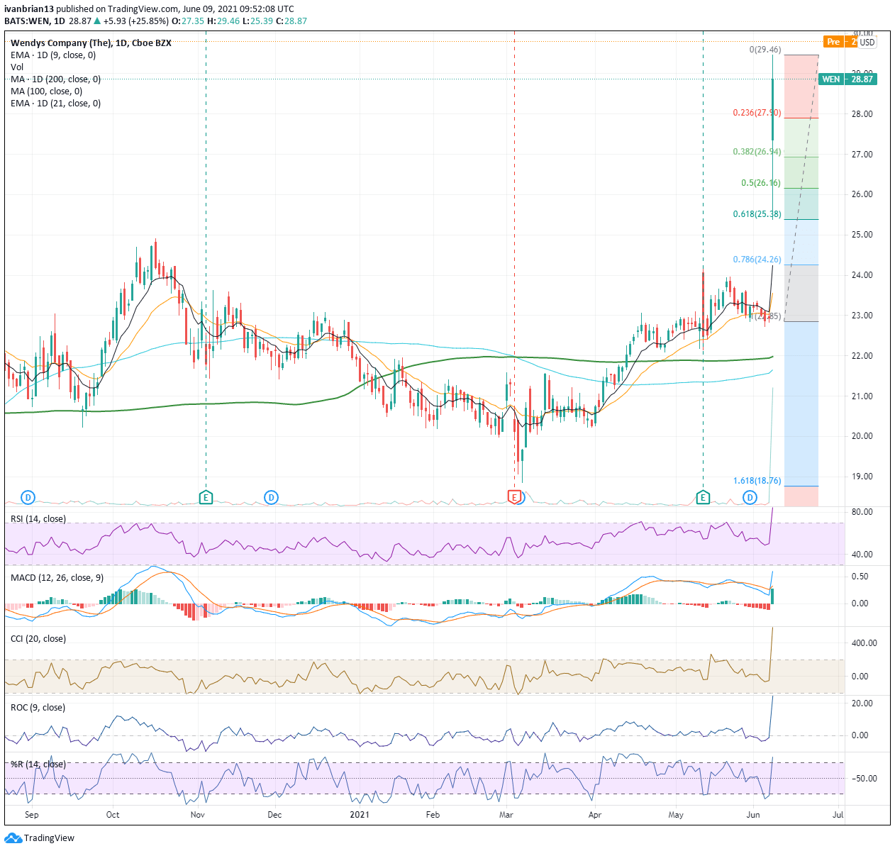 - WEN shares popped a mouth-watering 26% on Tuesday.