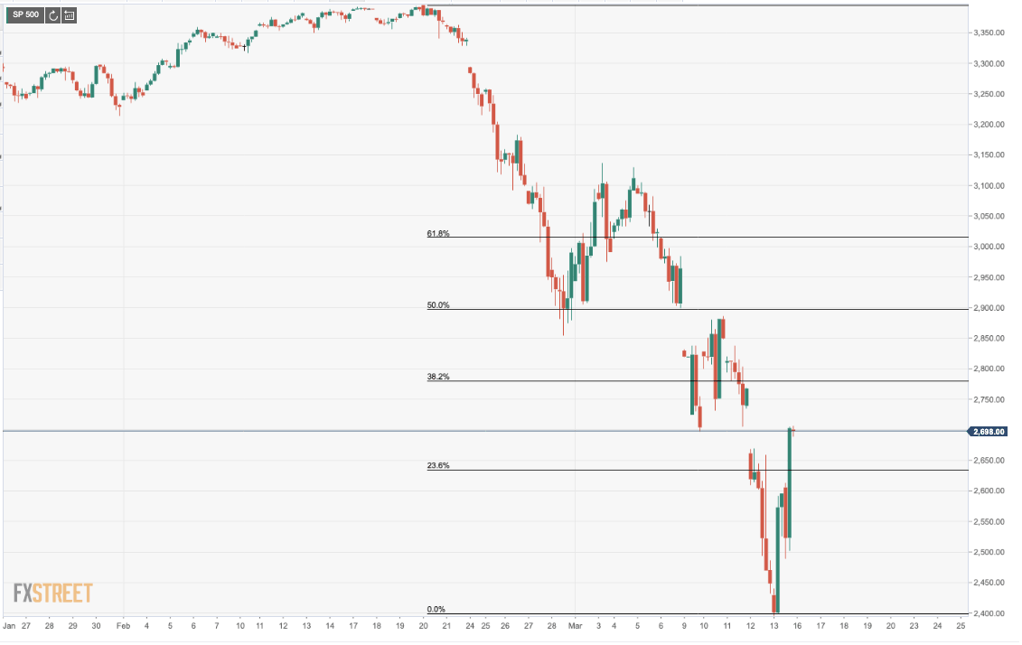 So far, we have seen 27% wiped off from the S&P 500, triggering a meltdown and bear market, with the biggest one day drop since 1987 last week. Also, the Dow’s plunge into a bear market from a recent high was the fastest since the Great Depression. However, when looking at Friday's charts, you would think that a cure or COVID-19 vaccine had been successfully developed with US stocks bouncing hard.