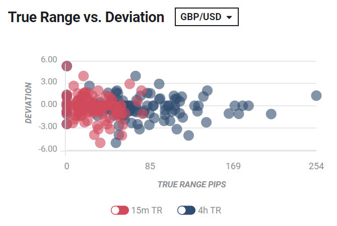 Readers can find FX Street's proprietary deviation impact map of the event below. As observed the reaction is likely to remain confined between 15 and 80 pips in deviations up to 2 to -3, although in some cases, if notable enough, a deviation can fuel movements of up to 120 pips.