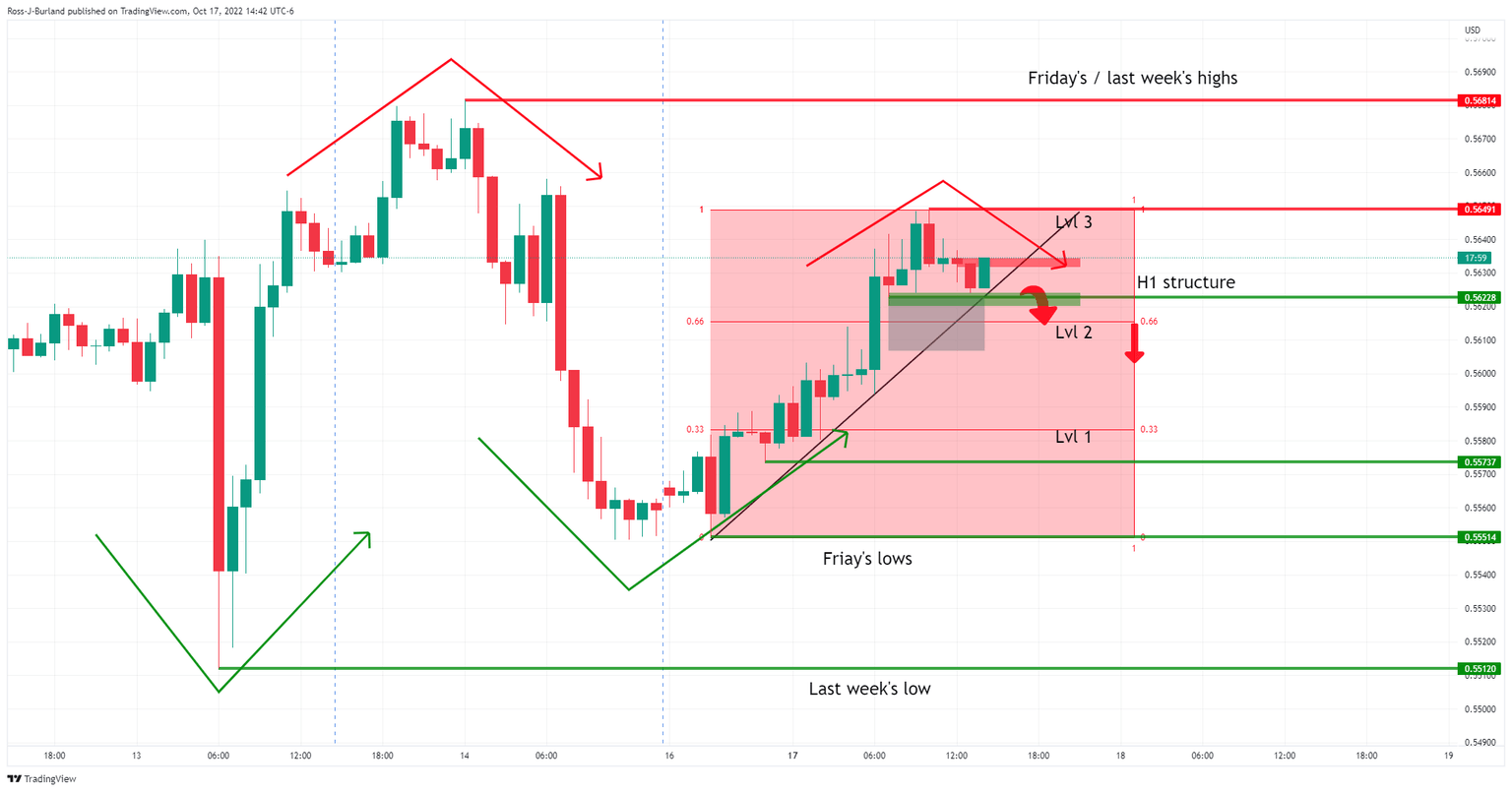 Given the lofty heights, the bird has flown on Monday, anything short of the expectations could seriously impact the currency with level 1, 0.5575 eyed on a break of level 3, 0.5622 as per the chart above.