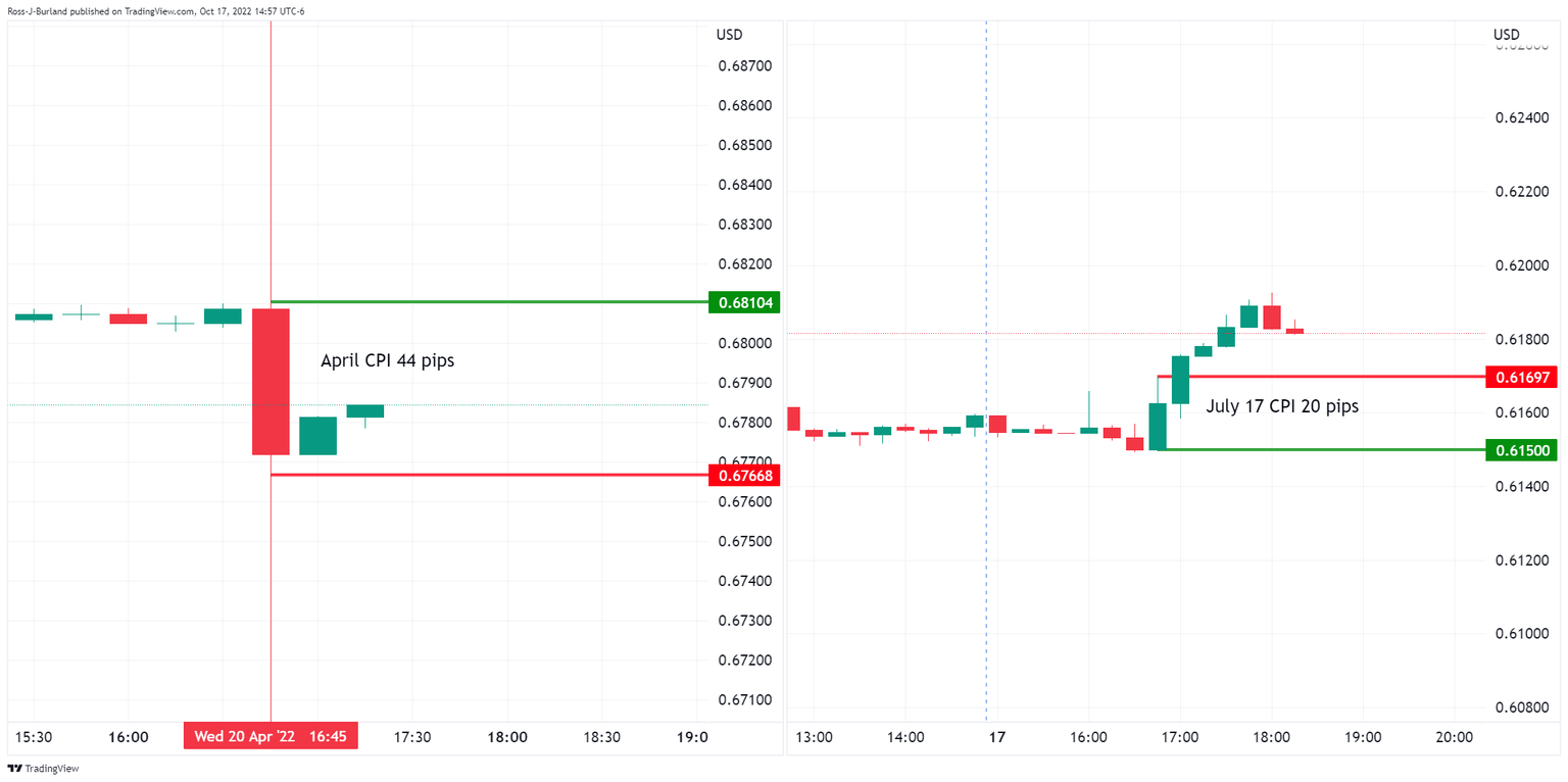In terms of price action, we can cast our eyes over the prior data releases and movement on the charts as follows:
