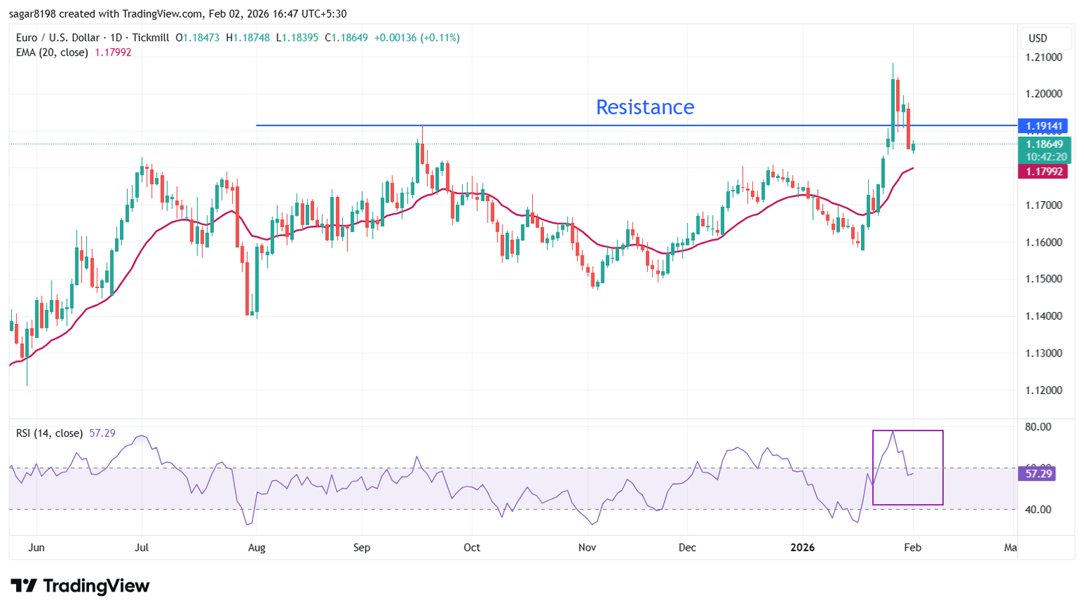 On the upside, the January high of 1.2082 will remain a key barrier for the bulls. Looking down, the 20-day EMA will act as a major support zone.