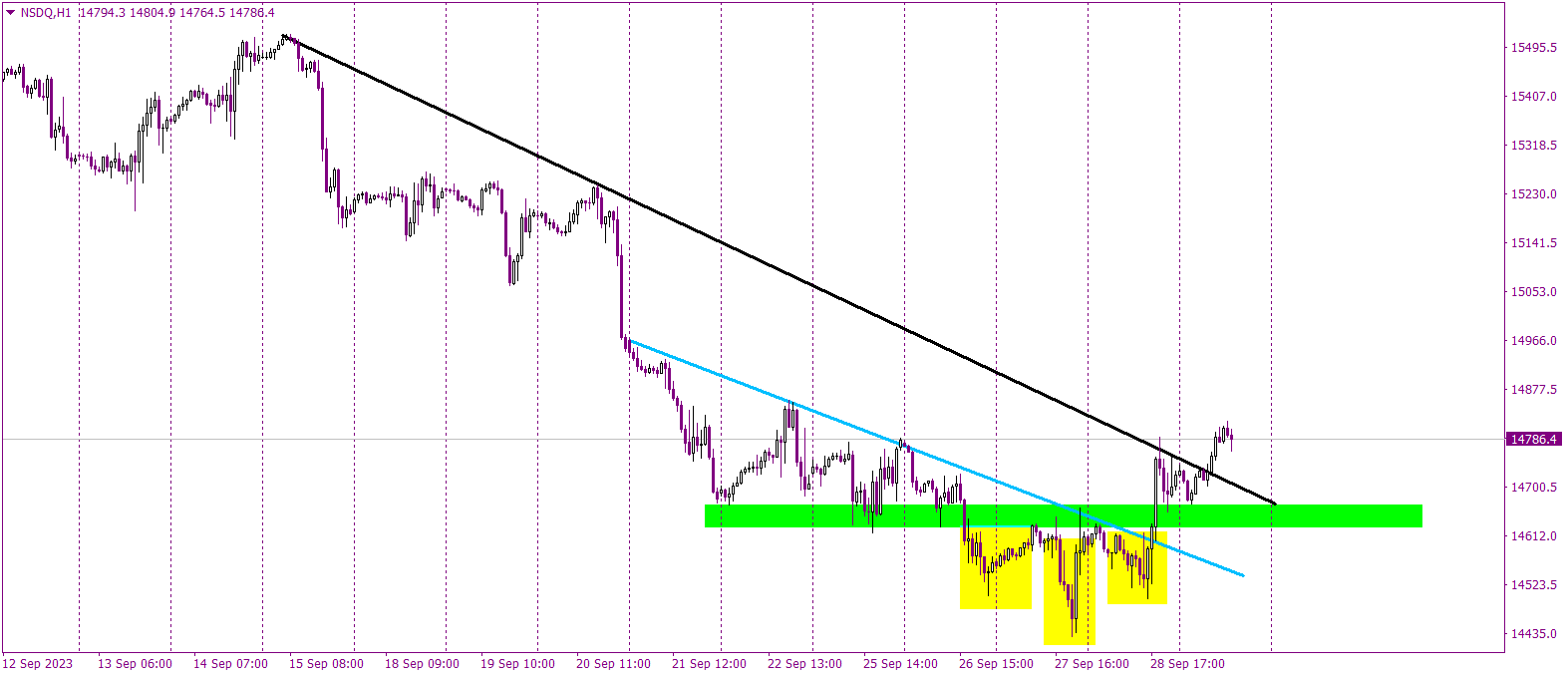 As we round up our analyses for the day, week, and month, our attention is captivated by the tech-centric NASDAQ. While we usually set our sights on longer timelines, today calls for an exception. We delve into the hourly charts, and the storyline here is, in a word, riveting.