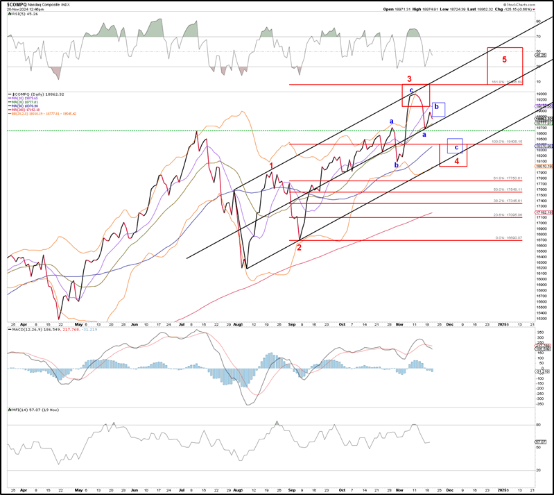 Figure 1. NAS daily chart with detailed Elliott Wave count and technical indicators