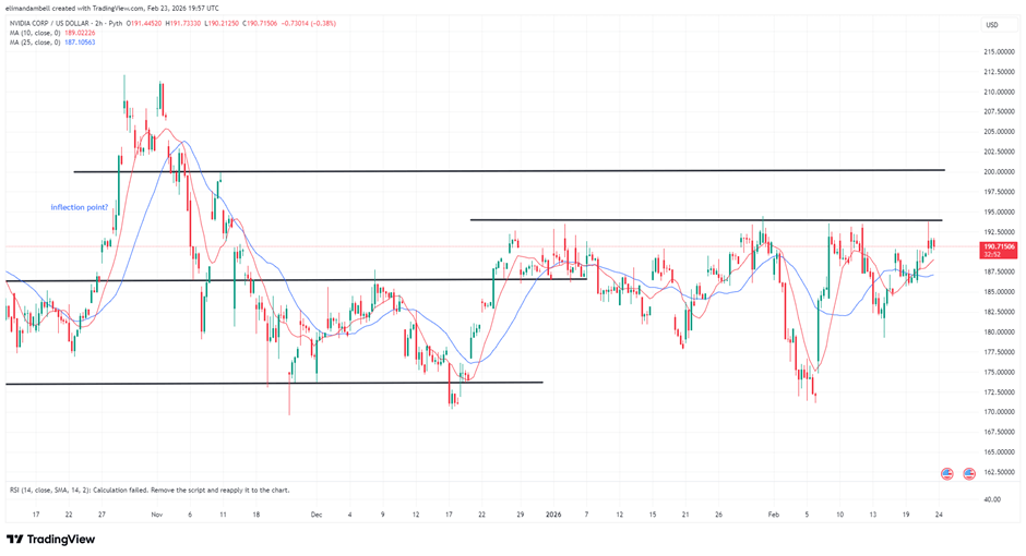 For those trading this week, the key price point to look at is the recent resistance level of $193.00. The last time we saw a true breakout of this level was in October 2025, with the stock going to reach an all-time high of $212.19.