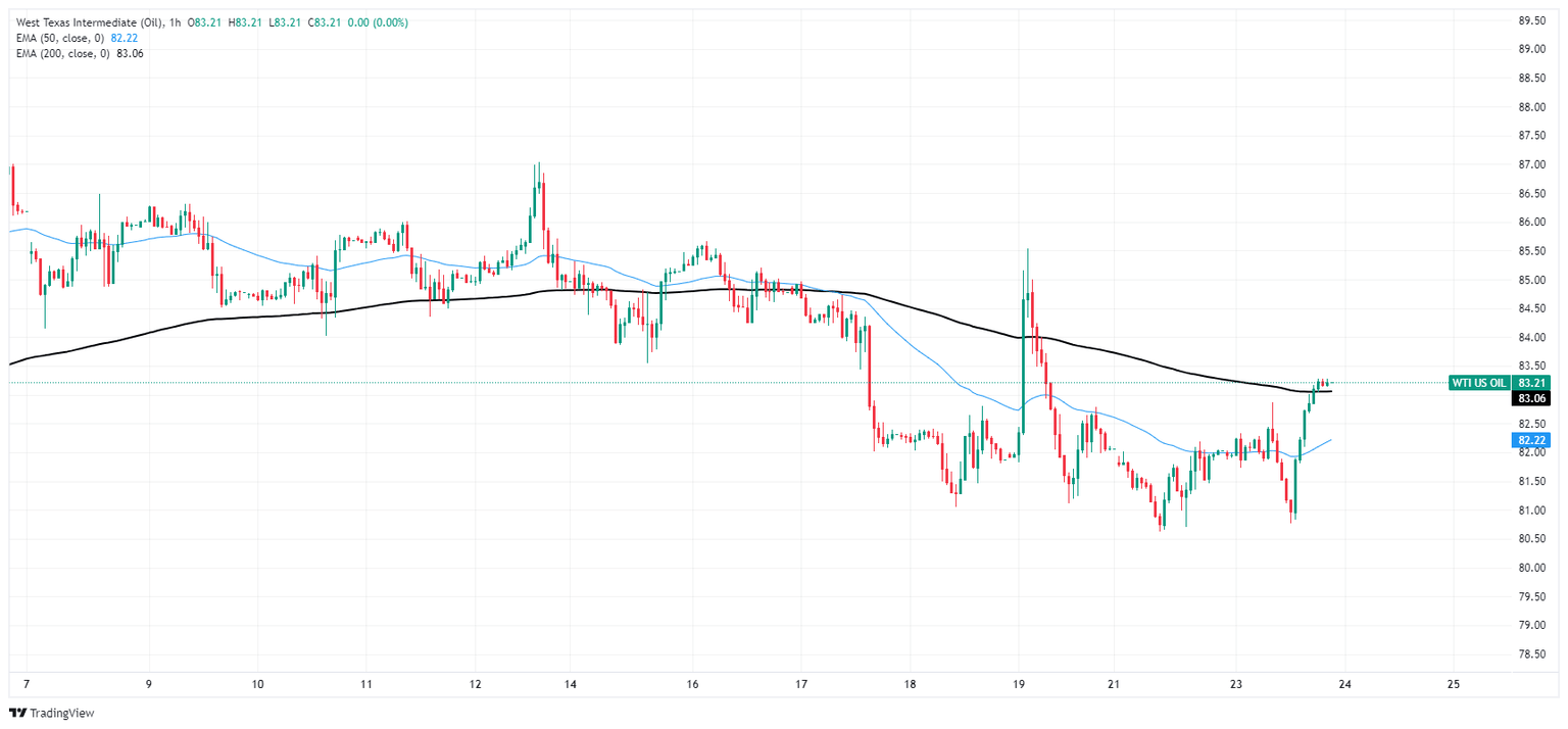 West Texas Intermediate (WTI) US Crude Oil started Tuesday on the low side, falling below $81.00 per barrel before a broad-market recovery in risk appetite dragged barrel bids into a fresh high above $83.00. US Purchasing Managers Index (PMI) figures printed much softer than expected, sparking renewed hopes of a weakening US economy forcing the US Federal Reserve (Fed) to begin cutting rates sooner than previously expected.