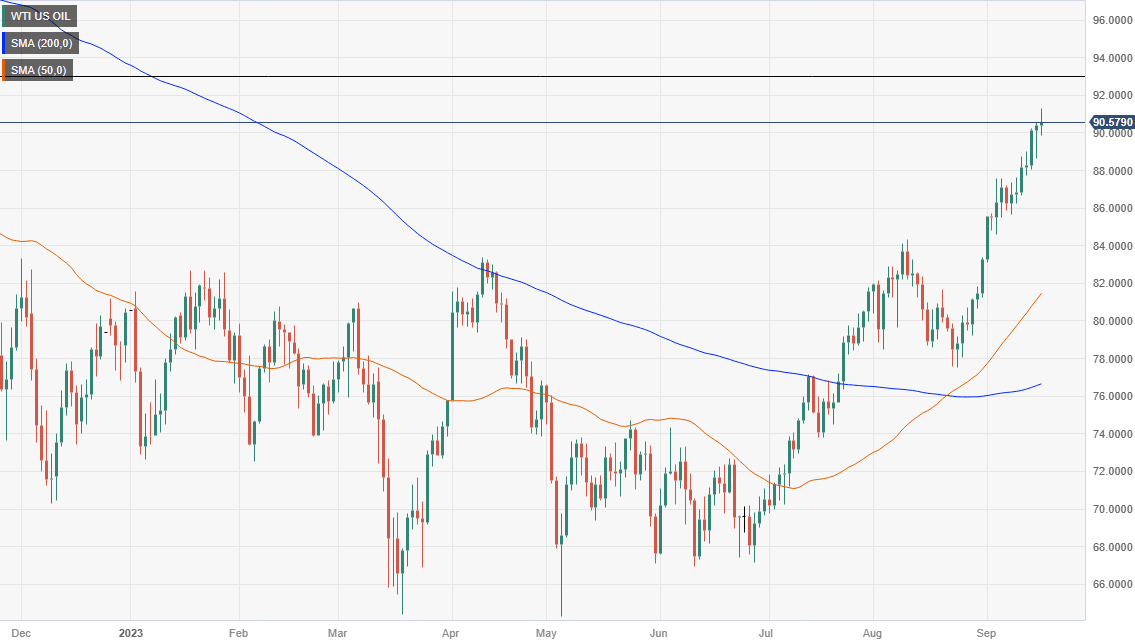 WTI crude oil nears $91 on OPEC+ cuts and demand uncertainty fueling price surge